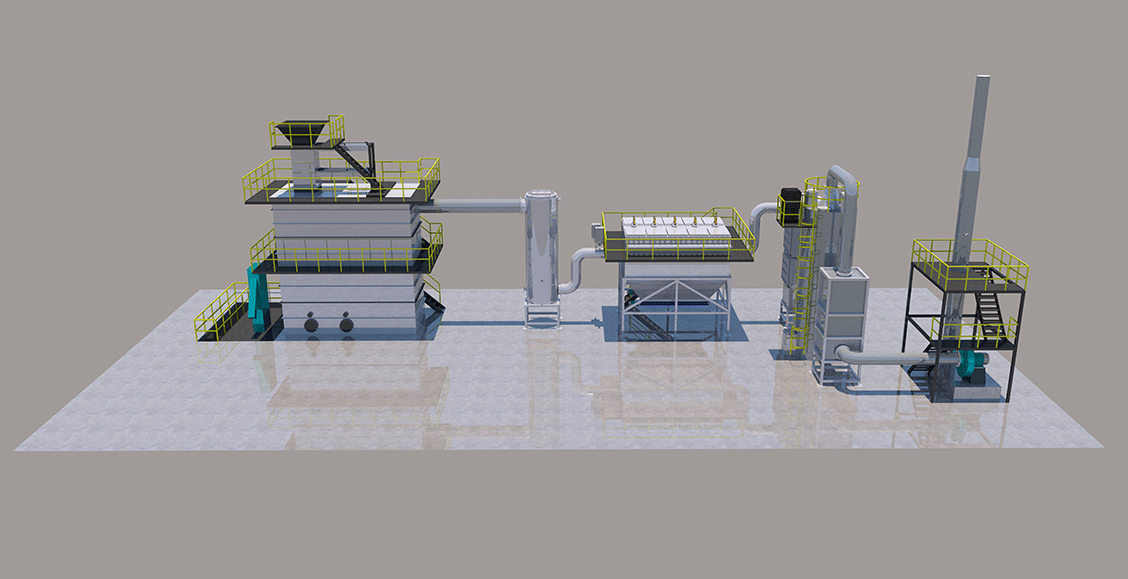 Under normal operating conditions, the process is free of smoke, color, odor, and noise. The emitted gases and mineral ash comply with national emission standards and have no impact on the surrounding environment. The ash, which is primarily composed of minerals, can be used as fertilizer and soil amendment material.