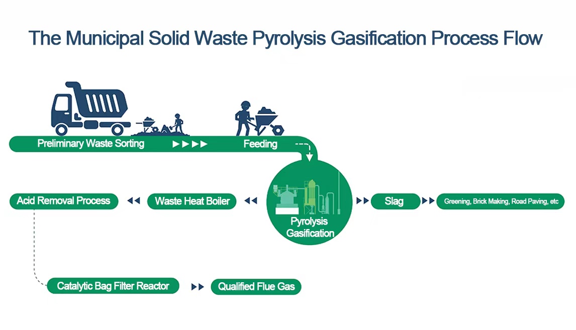Main Work Flow of the Pyrolysis Gasification Treatment Unit